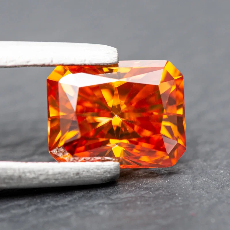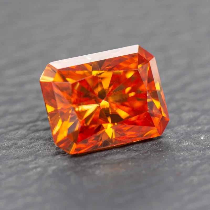 Moissanite Radiant Cut Orange Color Gemstone with GRA Certificate
