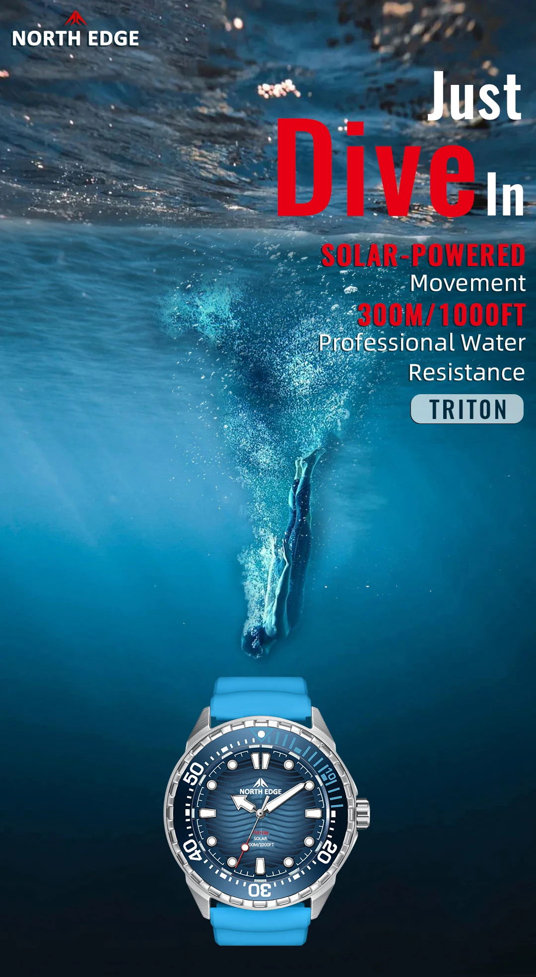 TRITON Solar Powered Dive Watch Quartz 316L Stainless Steel Waterproof