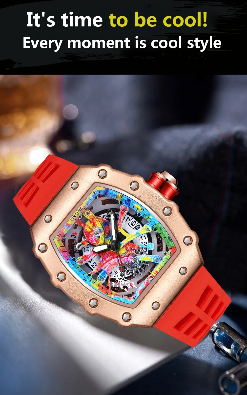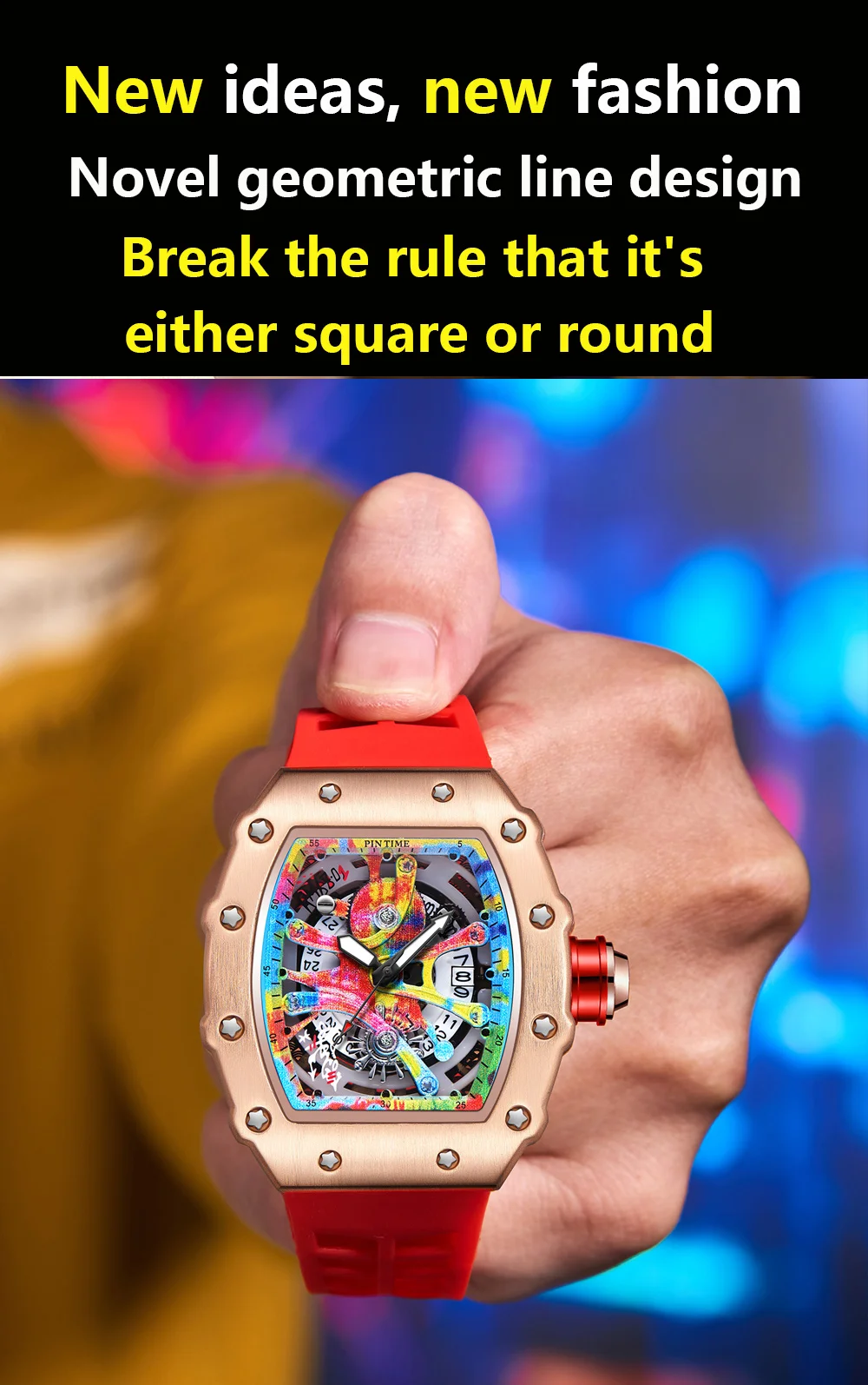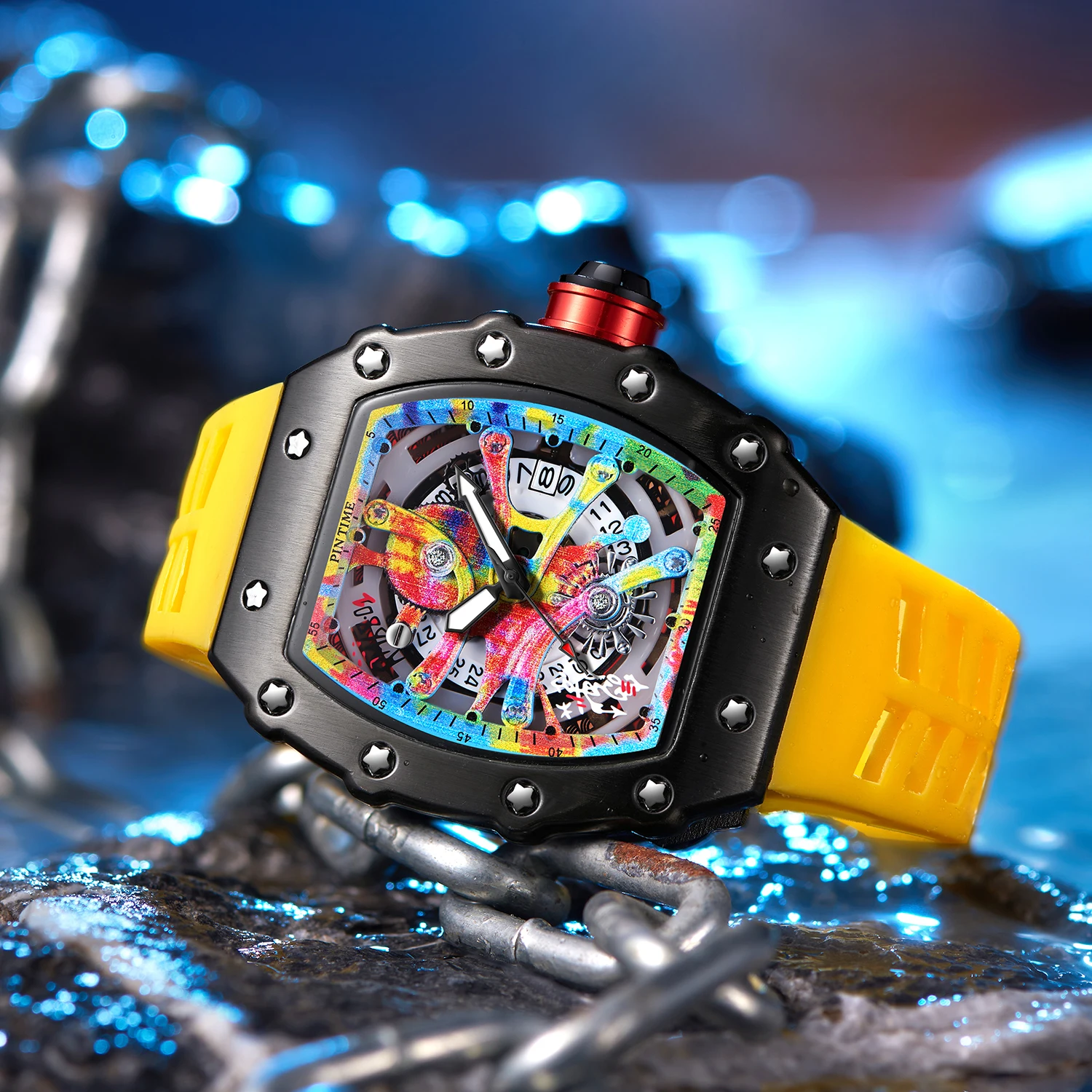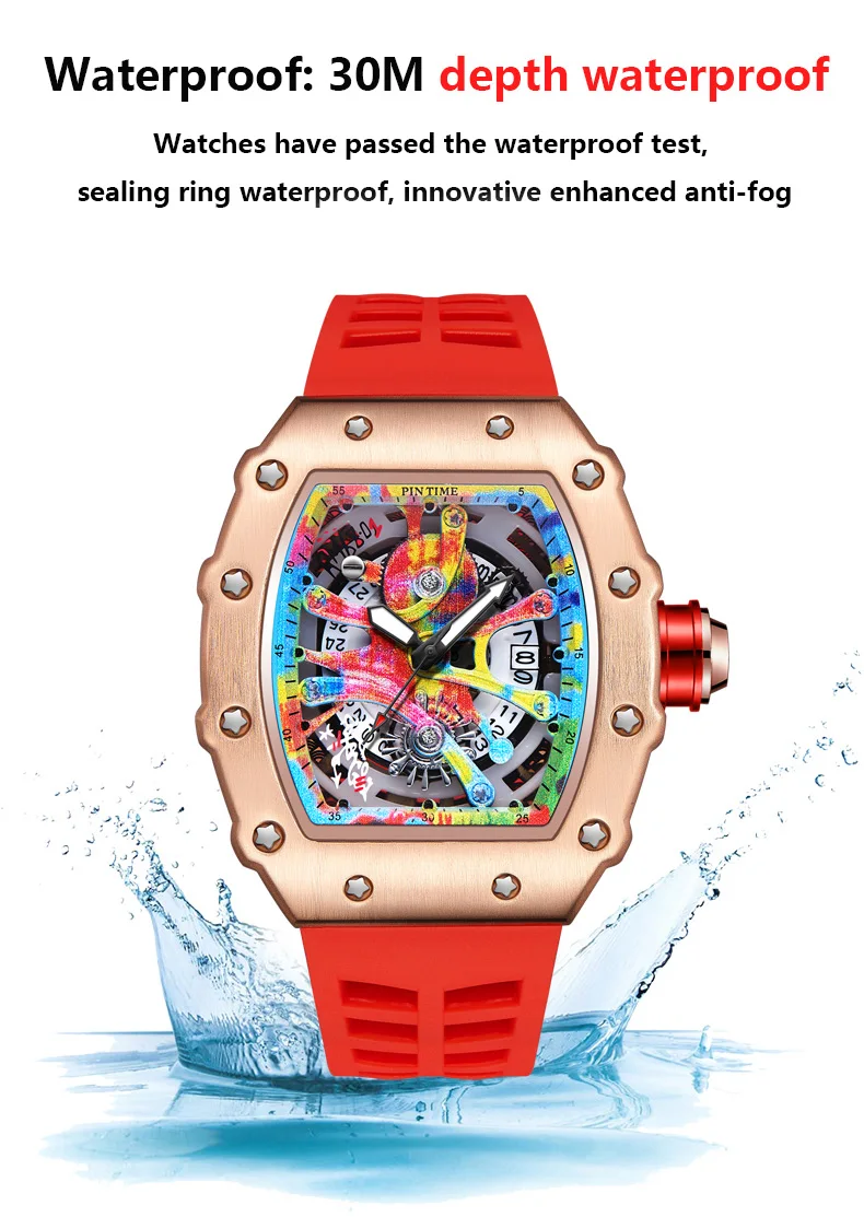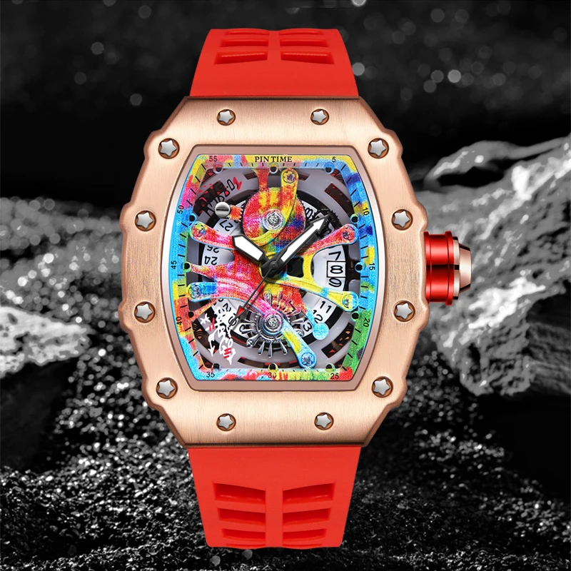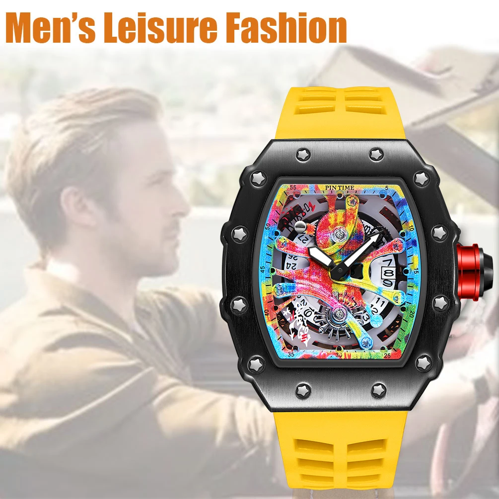 Watch Tonneau Men Quartz Graffiti Dial Date Waterproof Wristwatches