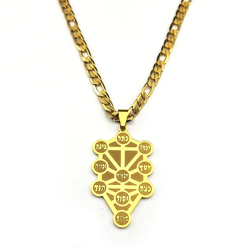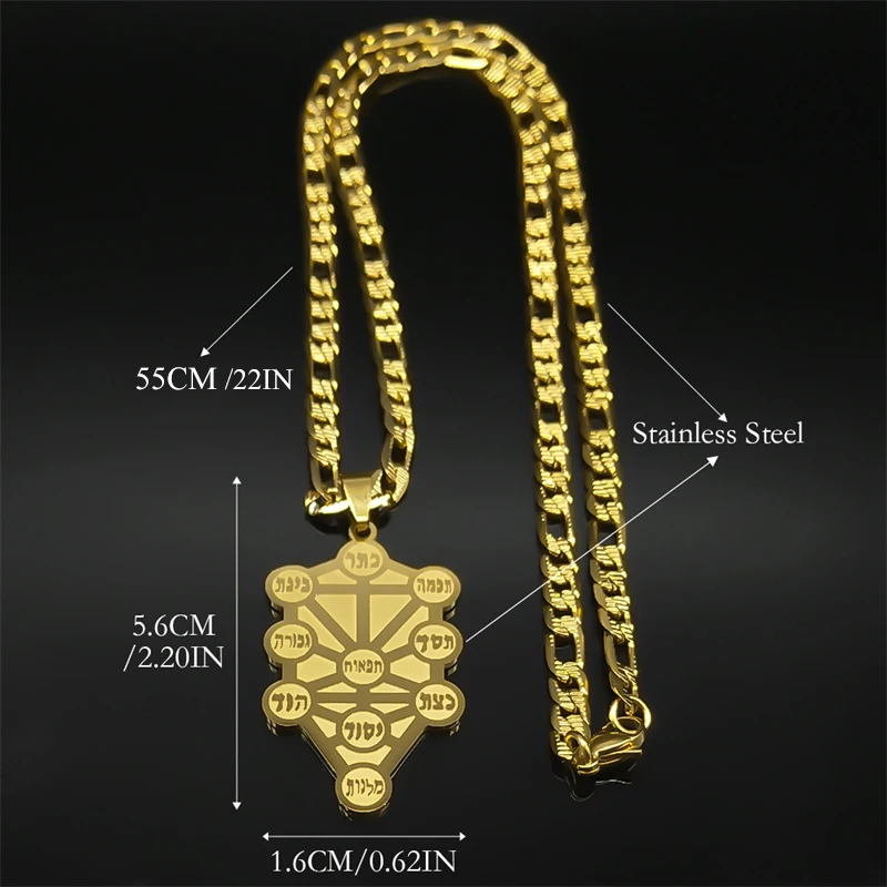 Kabbalah Sephirot Tree of Life Hebrew Pendant Necklace for Women Men Cabala Stainless Steel Chain Necklaces Jewelry Gifts