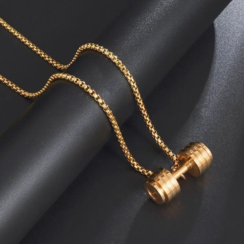 Titanium Steel Dumbbell Pendant Necklace Barbell Fitness Pendant Unisex Sports Jewelry
