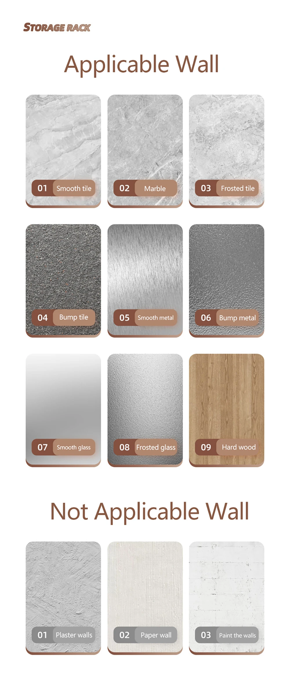 - Press the product against the wall